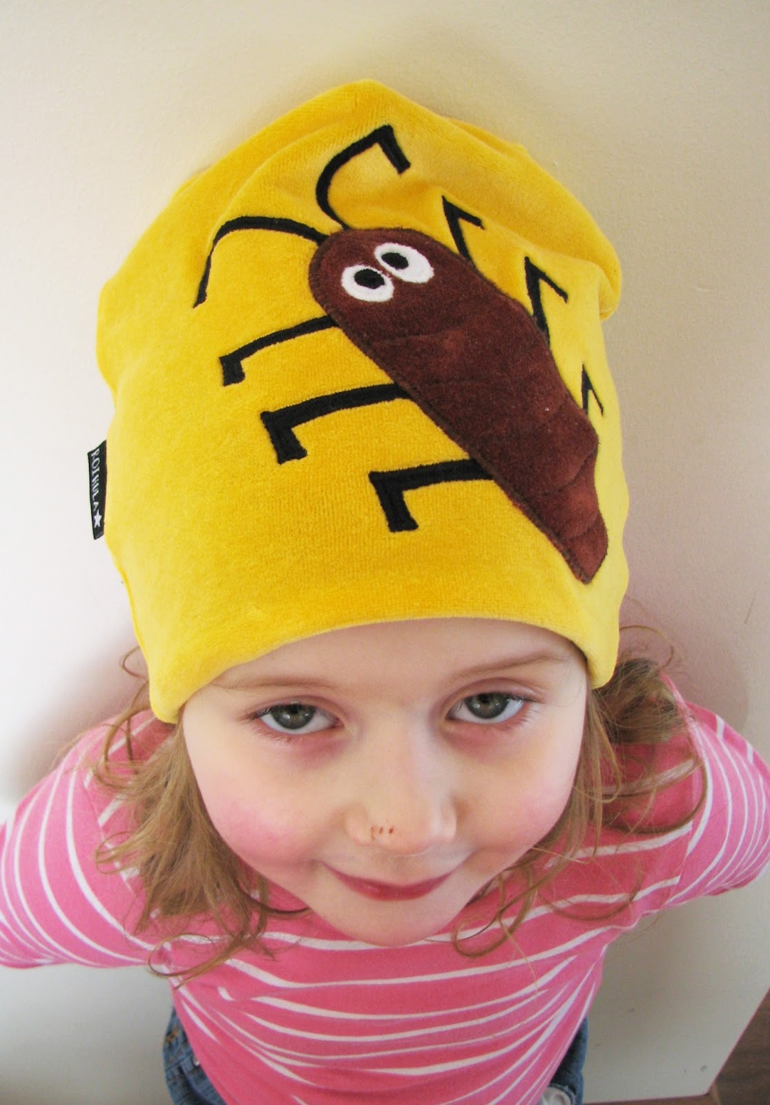 Ötökkä, pipo keltainen velour. Tämä velour ehti jo loppua, joten koitan löytää jonkun uuden tilalle. Ei ole vielä kaupassa.